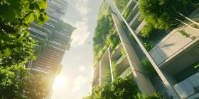Innovative Green Architecture with Dense Plant Life on Skyscraper background - Ai Generated