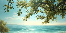 Olives in the branches on sea background - Ai Generated