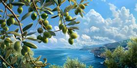 Olives in the branches on sea background - Ai Generated