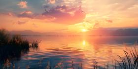 Panoramic Sunset over the lake background - Ai Generated
