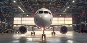 Passenger aircraft on maintenance in airport hangar background - Ai Generated