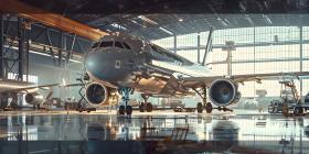 Passenger aircraft on maintenance in airport hangar background - Ai Generated