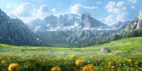 Mountain scenery with blooming meadows in springtime background - Ai Generated
