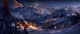 Mountains Ski resort at night background - Ai Generated