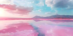 Pink lake with the incredible natural landscape background - Ai Generated