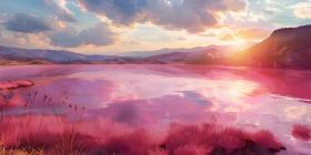 Pink lake with the incredible natural landscape background - Ai Generated