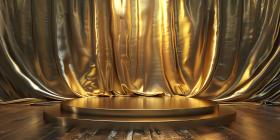 Podium with golden textile background - Ai Generated