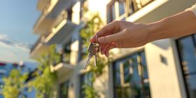Realtor is giving the keys to an apartment to clients real estate concept background - Ai Generated