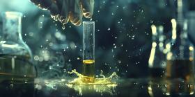 Scientist hand dropping chemical liquid into test tube background - Ai Generated