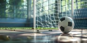 Soccer ball in goal court background - Ai Generated