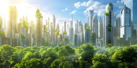 Innovative Green Architecture with Dense Plant Life on Skyscraper background - Ai Generated