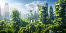 Innovative Green Architecture with Dense Plant Life on Skyscraper background - Ai Generated
