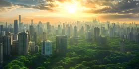 Innovative Green Architecture with Dense Plant Life on Skyscraper background - Ai Generated