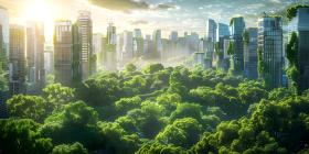 Innovative Green Architecture with Dense Plant Life on Skyscraper background - Ai Generated