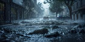 Storm with heavy rainfall caused a major flooding background - Ai Generated