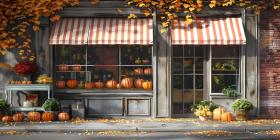 Storefront or shop outside with fresh pumpkins background - Ai Generated
