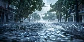 Storm with heavy rainfall caused a major flooding background - Ai Generated