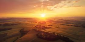 Sunset over Fields and Farms from a drone background - Ai Generated