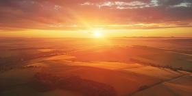 Sunset over Fields and Farms from a drone background - Ai Generated