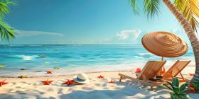 Beach umbrella with chairs on the sand summer vacation concept background - Ai Generated