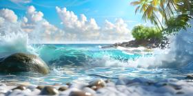 Tropical waves with rocks Ocean foam with narrow focus background - Ai Generated