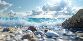 Tropical waves with rocks Ocean foam with narrow focus background - Ai Generated