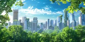Innovative Green Architecture with Dense Plant Life on Skyscraper background - Ai Generated