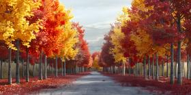 Big tree with colorful leaves on the roadside background - Ai Generated