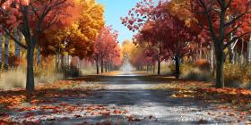 Big tree with colorful leaves on the roadside background - Ai Generated