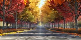 Big tree with colorful leaves on the roadside background - Ai Generated