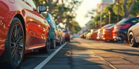 Cars parked at outdoor parking lot background - Ai Generated
