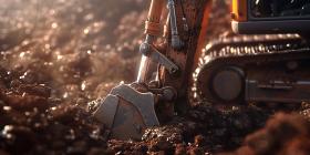 Closeup Excavator working by digging soil at construction site background - Ai Generated