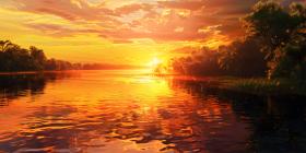 Sunset reflected in a river background - Ai Generated