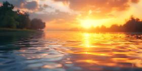 Sunset reflected in a river background - Ai Generated