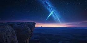 Stunning Night Sky over Cliff Edge A Breathtaking Celestial Land