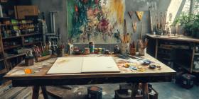 Artist Studio Messy Workspace Painting Art Supplies