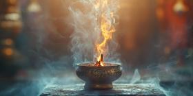 Spiritual Incense Burner Mystical Smoke and Golden Light