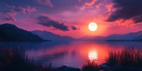 Stunning Sunset Landscape Lake Mountains and Vibrant Sky
