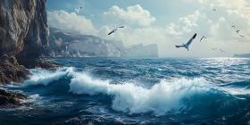Dramatic Ocean Waves Crashing Against Cliffs