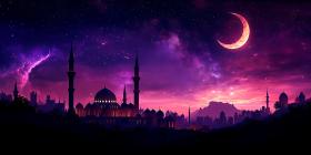 crescent moon night sky stars cityscape silhouette mosque minaret purple sky night view fantasy artwork digital art illustration purple pink night sky city buildings landscape beautiful scenic artistic dreamy magical serene calm peaceful tranquil astronomy celestial moonlight dark mystery romance silhouette art urban landscape evening night scene purple tones pink hues starry nightSimilar Photos