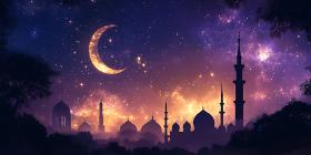 Magical Crescent Moon Night Ramadan Islamic Cityscape Starry Sky