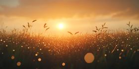 Stunning Sunset Landscape Golden Hour Meadow with Dewdrops and S