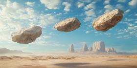 Floating Rocks Over Desert Landscape Surreal Digital Art