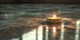 Single Lit Candle on Reflective Surface Peaceful Atmosphere Imag