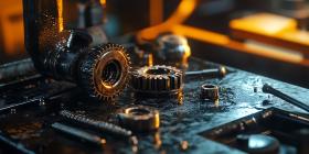 CloseUp of Industrial Machine Parts Gears Bolts and Nuts