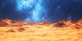 Alien Planet Landscape Orange Desert Under Nebula Sky