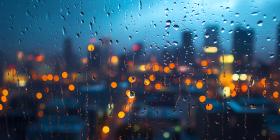 Rainy Night Cityscape Blurred Lights Through Raindrops