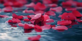 Red Rose Petals Floating on Water A Romantic Image