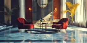 Luxury Red Velvet Chairs in Elegant Lobby