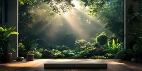 sunlight beams lush greenery foliage leaves plants nature green peaceful tranquil serene calm background backdrop scene setting outdoor environment landscape vibrant natural beauty platform stone concrete tropical jungle forest botanical vegetation sun light rays shadow illuminated dark bright contrast compositionSimilar Photos